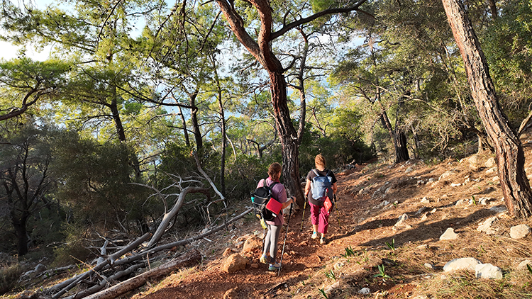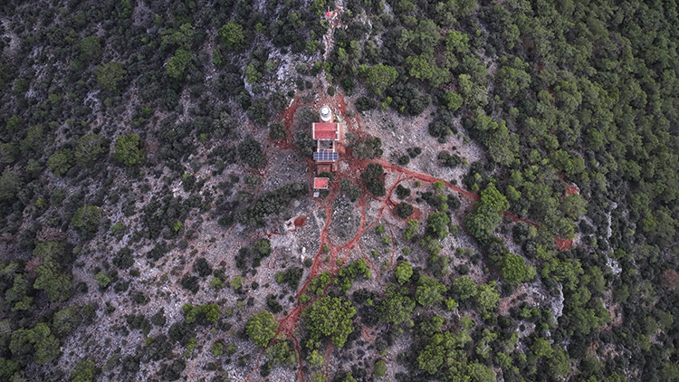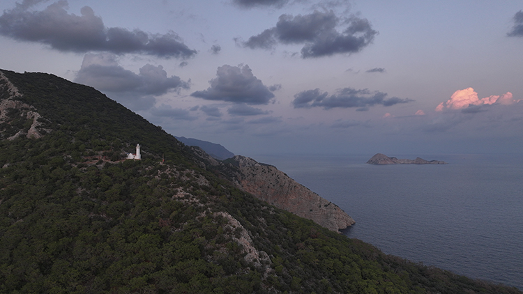 Likya Yolu’nda karaçamların arasında patika yoldan 2 kilometrelik yürüyüşün ardından tarihi fenere ulaşılıyor.